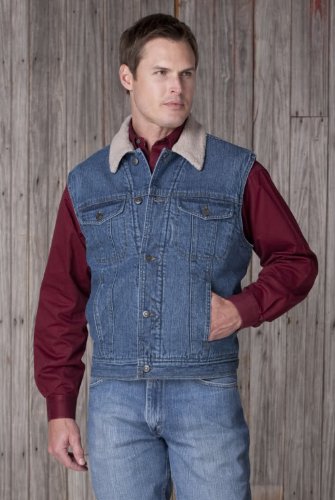 Keep yourself warm this winter with this rugged sherpa-lined denim vest from Cripple Creek. The sherpa fleece lining on the inside and the durable denim shell makes this vest perfect for the winter weather. Features Sherpa fleece collar and lining, button closures and inside chest pocket. Denim. Import.