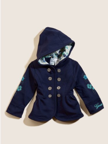 A pinch of sass and a sprinkling of flowers make a girly hoodie that's stylishly sweet. The perfect piece for layering, this jacket features a hood with floral-printed lining and embroidered sleeves. Peplum hem adds flare. Pressed-logo buttons decorate either side of the hidden zipper closure. Long sleeves. Logo at left cuff. ? 100% Cotton ? Machine wash Baby > Baby Girl (12 - 24 m) > Jackets