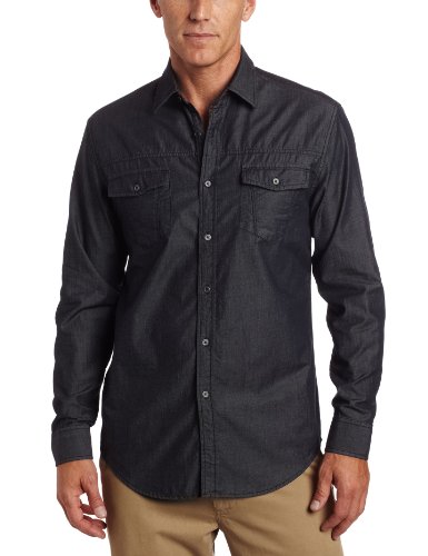 Perry Ellis Men's Long Sleeve Classic Fit Denim with Detail Feature
