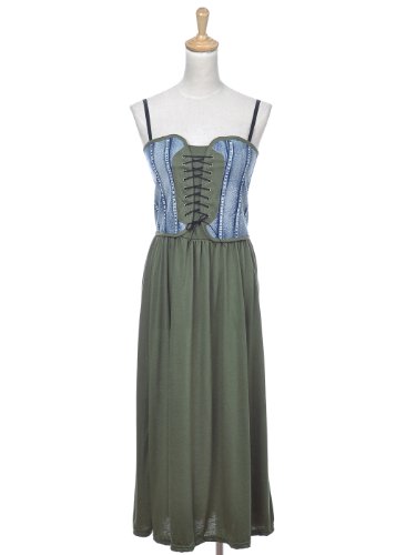 Anna-Kaci S/M Fit Green Laced Up Corset Denim Like Vest Strap Long Maxi Dress Review