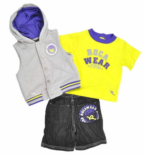 Rocawear Infant Boys Ash Gray Vest & Black Denim 3Pc Short Set Review