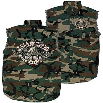 American Motorcycle Ride Strong Camo Sleeveless Denim Shirt Review