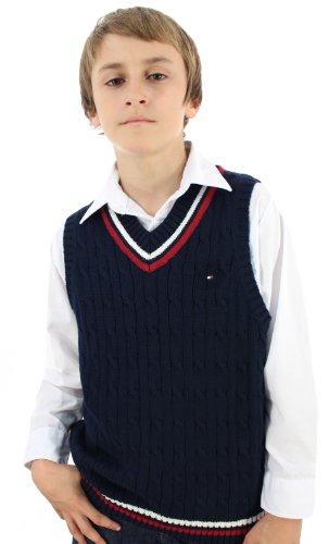 You son will look handsome and feel stylish and comfortable in this authentic Tommy Hilfiger Sweater Vest